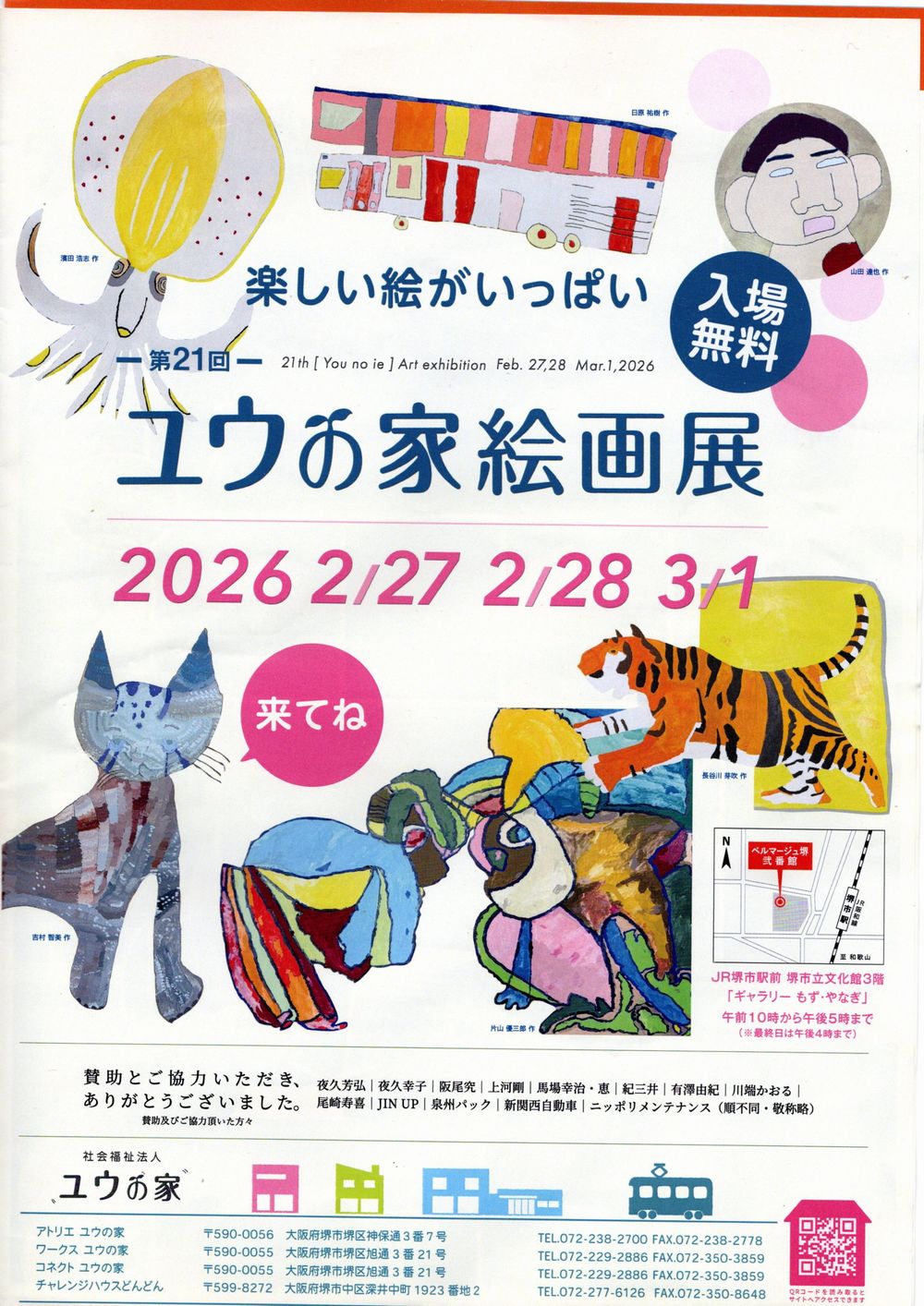 ユウの家絵画展 会期:2026年2月27日、28日、3月1日 時間:10時~17時(最終日は16時まで) 会場:堺市立文化会館3階 「ギャラリー もず・やなぎ」 ※堺アルフォンス・ミュシャ館と同じ建物です。 入場無料 & […]